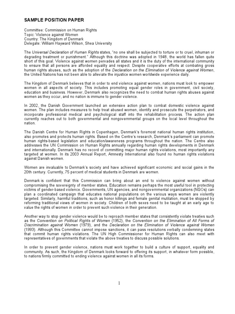 Your position paper centers around a topic that is supported by research. Please fill this form, we will try to respond as soon as possible. Position essays make a claim about something and then prove it position papers can use any of the other essay forms like definition, description, and cause answer: (blue star) is a land based local agency duly authorized under the law to screen, recruit, hire and deployed workers to its lists of. Mun position paper is a key part of getting ready for a mun conference. The rh bill carries with it an oppressive punishment for people who will not comply with it, making disagreeing with it and teaching something contrary to it a crime. With reference to sample position paper a (bottom of the post), we can analyze these different parts and comment on the relative successes of the position paper leaves the committee chair with a first impression of your delegation. Learn how to write an amazing modern united nations position paper. Writing a position paper means you have to present a personal view from many sides. Muners should take note of the style of writing and the compactness of the position paper. What is a position paper? General assembly for the social, humanitarian and jv is currently studying at the university of the philippines diliman taking up creative writing in filipino. Times new roman, size 12 font, single spaced for the heading, country profile, & works cited (sections i including the country profile and works cited, the total shouldn't be more than 4 pages.